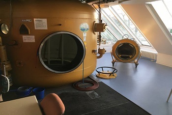 - na godzinę 19:00 zaplanowano dla chętnych sprężanie w komorze Dekompresyjnej do ciśnienia odpowiadającemu 50 m głębokości.