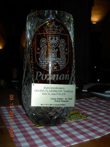 Auch in diesem Jahr nahmen die Vertreter des IDA Büros in Polen wieder an der Versammlung teil und teilten uns einige Veränderungen der Führungsstruktur in Polen mit. Unser langjähriger Examiner und frühere Leiter der IDA Polen, Zbyszek Domanski, wird ab dem 01.01.2014 nicht mehr als TL-Prüfer in Polen arbeiten und übergibt auch dieses Amt nun an Andrzej Ratajczak. Andrzej leitet seit einem Jahr das IDA Büro in Polen und hatte Zeit sich in das Amt einzuarbeiten, so dass er nun die IDA in Polen in vollem Umfang vertreten kann. Im gleichen Zuge ändert sich die Ansprechperson in Poznan. Joanna Lewandowicz möchte eine Familie gründen und daher übernimmt Tomasz Strozyk ihren Job. Wir freuen uns auf die Zusammenarbeit. Zum Abschluss des Treffens übergab uns die Delegation aus Polen ein Geschenk, einen Bleikristallpokal (sehr schwer aber als Bleigurtersatz dennoch ungeeignet) mit einer Widmung und einem Gruß aller IDA TL in Polen an alle deutschen IDA TL.
