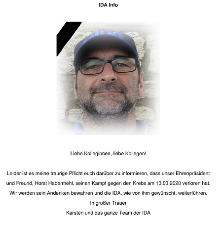 Am 13.03.2020 verstarb der Präsident von IDA Germany-Organisation Horst Habermehl.